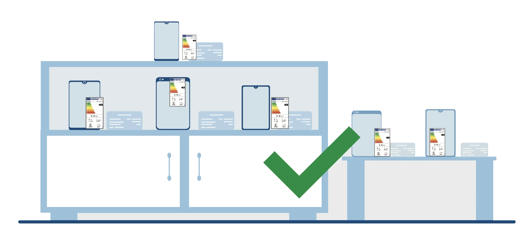 To znamená, že každý prodejce chytrých telefonů a tabletů musí zajistit správné zobrazení štítku na produktové stránce, v blízkosti ceny a názvu produktu.